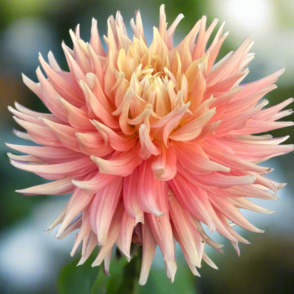 Bold and Beautiful: AC Ben shows off massive 10” blooms with petals that swirl in shades of peachy orange, coral, and creamy butter yellow. The colors are warm and inviting, making it hard to look away.