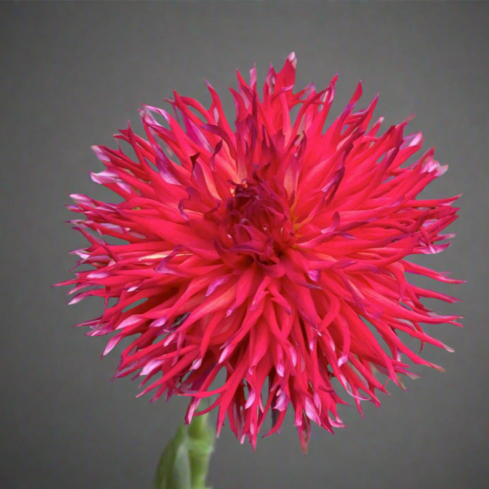 Bloomquist Joel isn’t here to play it safe. This 4”-5” laciniated dahlia shines in a fiery red, with pointed petals that twist and curl, revealing darker tips that give it a frosted, almost glowing effect. It’s the kind of flower that demands attention—whether in the garden or a bouquet.