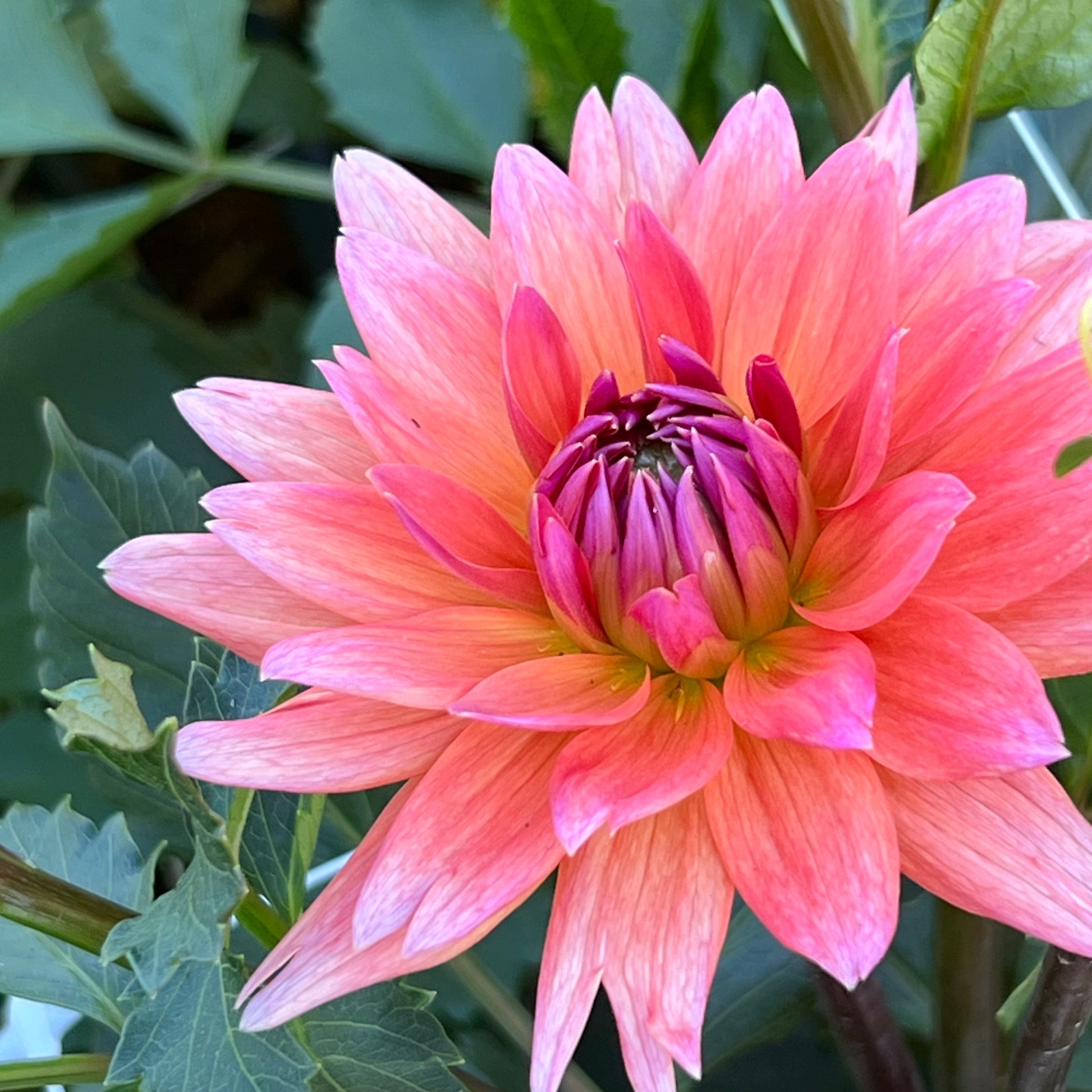 Dahlia ‘Schneckenstein’ is a rare find with an elusive history. Introduced in 1978 by German breeder Helmut Wolf—one of the masters of dahlia breeding in the former GDR—this salmon-colored beauty has stood the test of time, even if its backstory remains a bit of a mystery.
